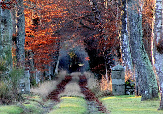The gloaming falls, blue and serene, with a tiny delicate new moon suspended over the lime avenue. The dogs dance in the gloaming just as they danced in the dawn.
