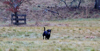 It was minus seven this morning and the world was white and still and petrified. The dogs leapt and flew and soared along the line of the burn, rejoicing in the vivid scents, barking hilariously at the flappy old heron, chasing imaginary creatures only they can see. Down in the field, the horses were as unmoving as the rock of ages, fluffing up their coats against the cold, peacefully gazing into the amber light.