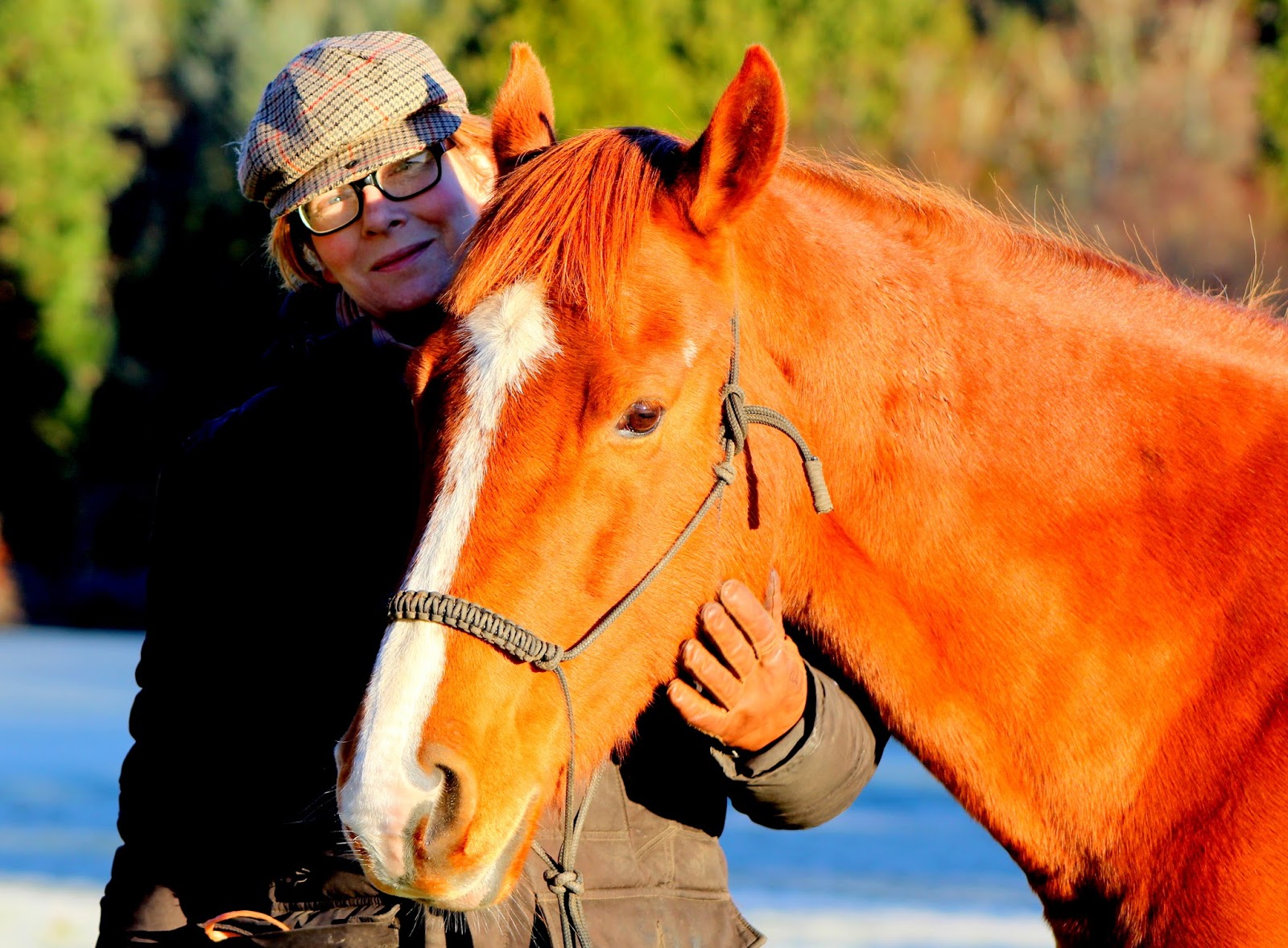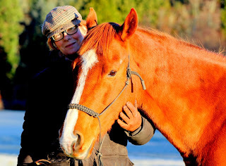 The horses are happy in the sun and my kind friend has done all the hard work, putting out the haynets and filling up the frozen water trough. It is as if dear elves have come in the night and fixed everything up, so all I have to do is stand with the magnificent creatures and do the love. The little brown mare in particular wants the love, and when I turn to go, she follows me, to get some more. I give her more. There is no end to the love.