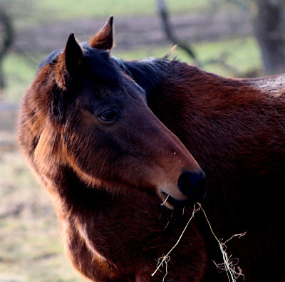 Today, I heard the birds sing. I don’t know if they have been singing like this for a while and I had been too busy thinking of other things to hear them, or whether they are really revving up for spring. The pied wagtails have arrived, which is always a hopeful sign, and one came and wagged his tail at me on the gate. The dear, faithful robin who stays with us all winter was flitting and hopping from perch to perch. I always think of robins as fat, stolid characters, mostly I suppose because of the Christmas cards, but in fact they are nervy, athletic creatures, always on the move. I worked my little brown mare and then we stood in the rain and listened to the birds. I suddenly thought of the more urban of the Dear Readers. Is it odd, I wondered, to be sitting on a bus or a train reading about a slightly flaky woman listening to birds in the rain? I adored the city when I was in it. I loved the myriad of faces, the Babel of languages, the feeling that all the world was there in London. I loved the taxi drivers and the men in frocks and the old timers down the North End Road who were such Londoners that they were almost a caricature. I loved jumping on and off the grand old Routemasters and standing on the platform holding the pole with the wind in my hair. I loved the elegant arcades of Mayfair and the greasy spoons and the old-fashioned barbers which still had the red and white swirling thing outside. I loved the dodgy basement clubs in what was still the front line (that part of Notting Hill where gentrification had not yet reached) and the wide open space of the Serpentine and the tan ride at the bottom of Hyde Park where the army horses exercised at dawn. I loved all of it and I never thought I would leave and then I left. I fell in love with these hills like you fall in love with a person. Now, I spend my life with mud on my jeans and hay in my hair and mysterious little smears of dirt and horse feed and other imponderables on my forehead. I wear absurd hats, not for fashion but to keep off the weather. I stand in the field with a gentle thoroughbred mare and listen to the birds.