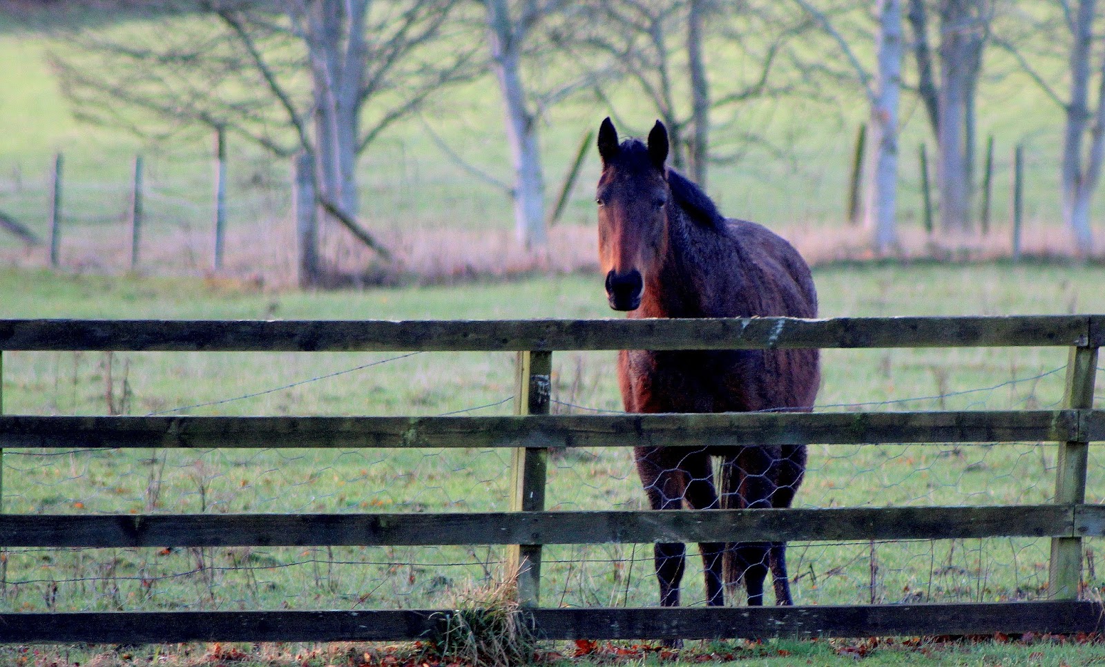 It is a huge field, the one they moved in to after the flood, about twenty acres at least. They mostly favour the far western end, up on the hill. I think they like the view. But this evening, in the dear old gloaming, they were at the near fence, as if they were waiting for me.