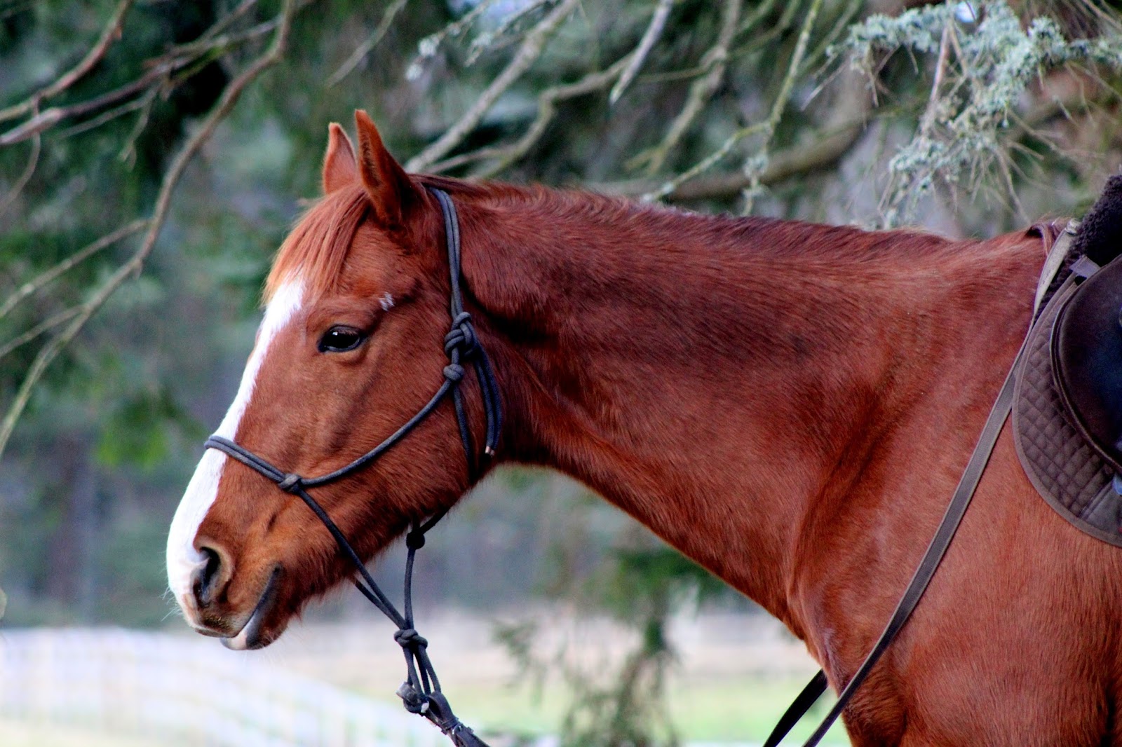 This evening, in the gloaming, under a shining sliver of crescent moon, I stood in the field and told my mare a story. She loves the sound of the human voice, and so instead of just talking nonsense to her I told her an actual story, as one might tell a child a fairy-tale at bedtime. She listened gently, resting her head on my shoulder, and then she let out a very long sigh. I could not quite tell whether it was in sympathy, or acute boredom. I laughed a bit and stood with her some more. Her world is so steady, so sane, so immediate, so authentic. It brings me peace.