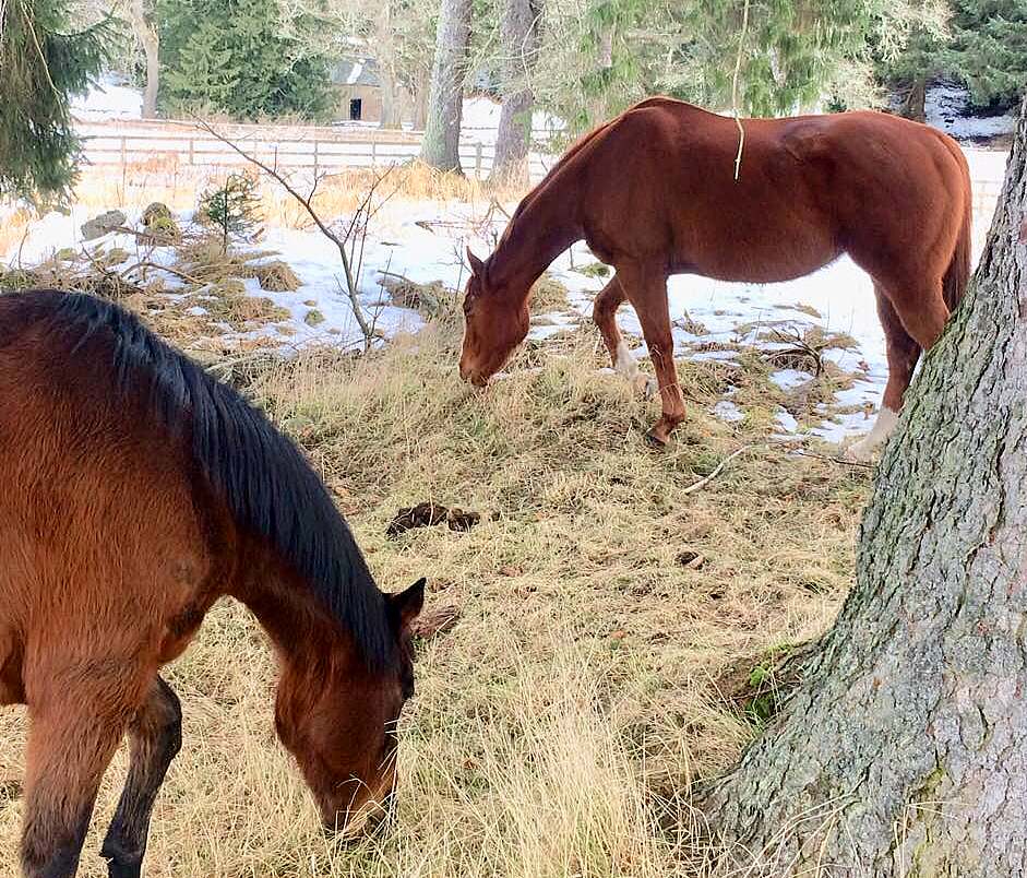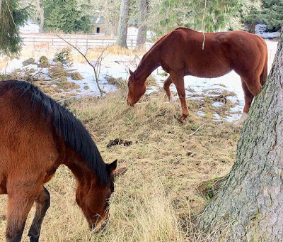 2. The mares found some grass this morning, the first grass they have seen for two weeks. They were so elegantly and gently pleased. I watched them with absurd delight.
