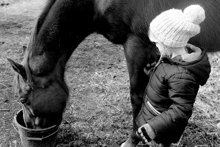 The small things today were very, very fine. After I flailed my way out of the Swamp of Overwhelm, my eyes become open again to loveliness. Every day, I thought to myself, as I walked down to the field with my young friend Sophie, write down one good thing. Don’t just notice the one enchanting thing, write it down, mark it, be grateful for it. That may just be the secret of life.Sophie is four. She likes coming down to help make the mares’ breakfast. ‘A bit more of this? Some of that? Oh, they will like this.’ They are very gentle with her and she has no fear around them and watching them together is enough to make the most battered heart expand like a flower in springtime.After her mother came to pick Sophie up, I waved goodbye to them and took the mares down to a hidden glade in the west wood where there is the very first of the spring grass. They fell to grazing with such profound delight that it made me laugh out loud. I rang up a friend and we made jokes about generals. She has been spending time with some very splendid generals for her work and she kindly described the top brass in detail. This made my day. Then the friend whose mare shares our paddock came down and we spent an hour clearing up dung. Shovelling shit is not my favourite occupation, but when you are doing it with a wise friend who is describing life as if she were a philosopher it becomes a keen pleasure. I felt all the things which have been besieging me over the last few days fade away, as if they meant nothing. We cleared eight wheelbarrows of dung and set the world to rights. Then I ran down to do my HorseBack work. They are doing their Youth Initiative today, where they take children who are having trouble at school and teach them teamwork and leadership and how to look after and ride the horses. As I drove along the valley, thinking I was going to be late, I saw the group riding along the Deeside Way, a happy flash through the silver birches. I pulled over and leapt out of the car and snapped away with the camera. All but one of those children had never known a horse until they came to HorseBack and now they were riding through the woods. Even more wonderful, all the children had a veteran by their side, as both moral and practical support. It was one of the best sights I have ever seen.