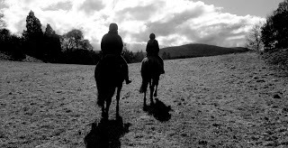 This morning, I had to get my act together. I had to ride down the valley to my jumping lesson. My mare and I have signed up for a charity challenge to do a one-day-event to raise money for bone cancer research, so I have to have those jumping lessons. I was so mired in the Swamp of Overwhelm that I nearly rang up to cancel, but I thought that was really too tragically weedy for words, so I got on my fine thoroughbred and rode down the Deeside way.