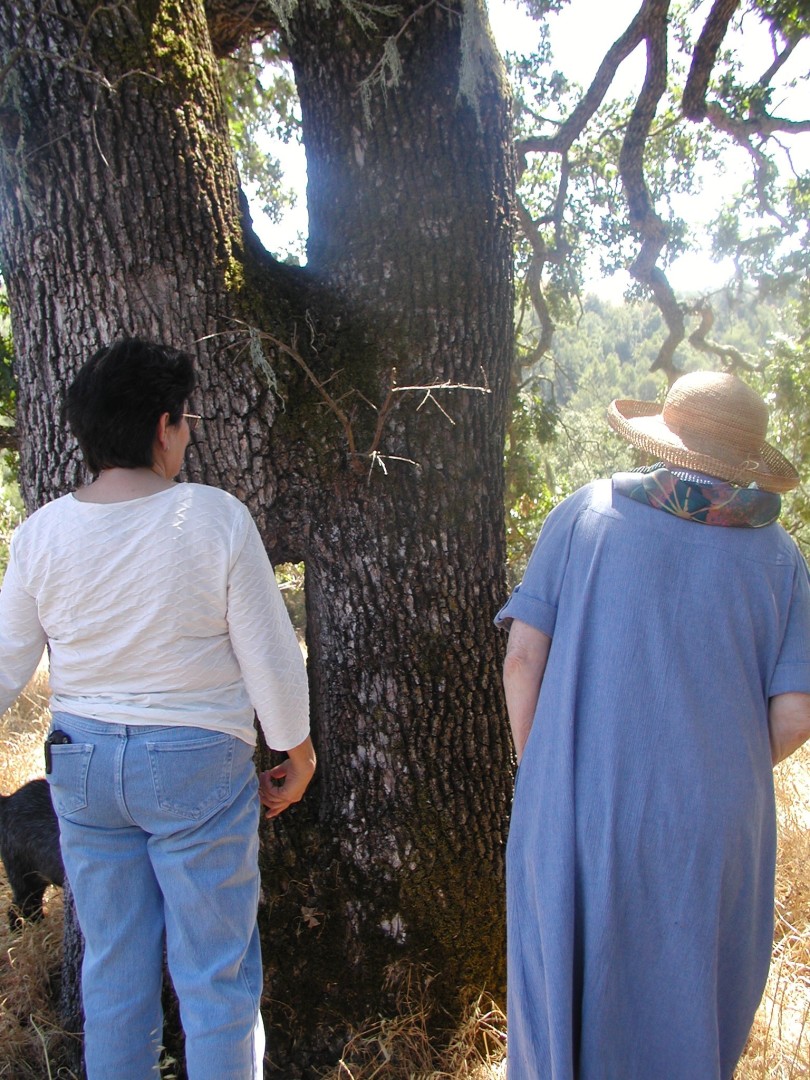 The grafted valley oaks. Mary Jo on the right.