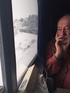 Why do I love train travel so much? Every chance I get, I arrange “adventures” for family and friends that involve the rail, and they cheerfully oblige, at least the first time! Donald and I are traveling home from Minneapolis to Chicago, Chicago to Martinez, CA, now just beginning the climb after Denver into the Rockies. My iPhone says that it is 1º outside, a temperature that I always thought was too cold to snow, but it has been snowing heavily. We are warm, though, and sequestered in our super-roomette (okay, closet!)