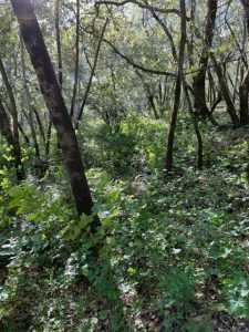 When I spoke with Charlie Toledo last week about the forest on our ranch, she said she was always concerned about the overgrowth. First People would have kept the forest thinned with cultural burning so the stream would be accessible to deer and coyotes, so there would be reeds for baskets and the acorns, healthy.