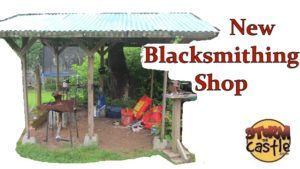 I now have a new blacksmithing setup. It is a covered area and I like it a lot! There are a couple of nice advantages to this new setup including being sheltered from the weather. There was a point on my first day of using it when it started to rain, but it didn’t matter. That was nice. And being shaded means I can see the hot steel much better. You have to be able to judge the heat of metals when forging them and the color is important.