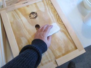 I am gearing up for a new batch of bees this spring and I am so excited. Today me and Dee stained one of the new beehives. Tomorrow we apply a sealant to it. Soon it, along with another hive will be the home for bees. Yay! Here are a couple of pictures.