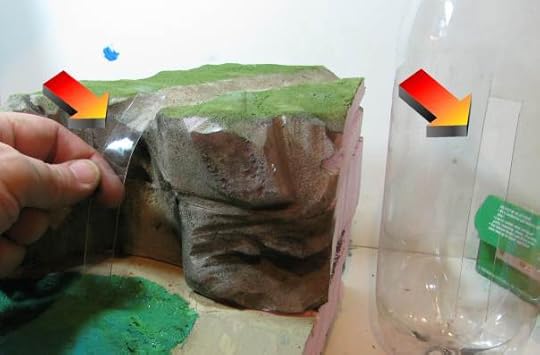It’s a clever idea where you cut a strip from a soda bottle and use that as the base to make the waterfall.