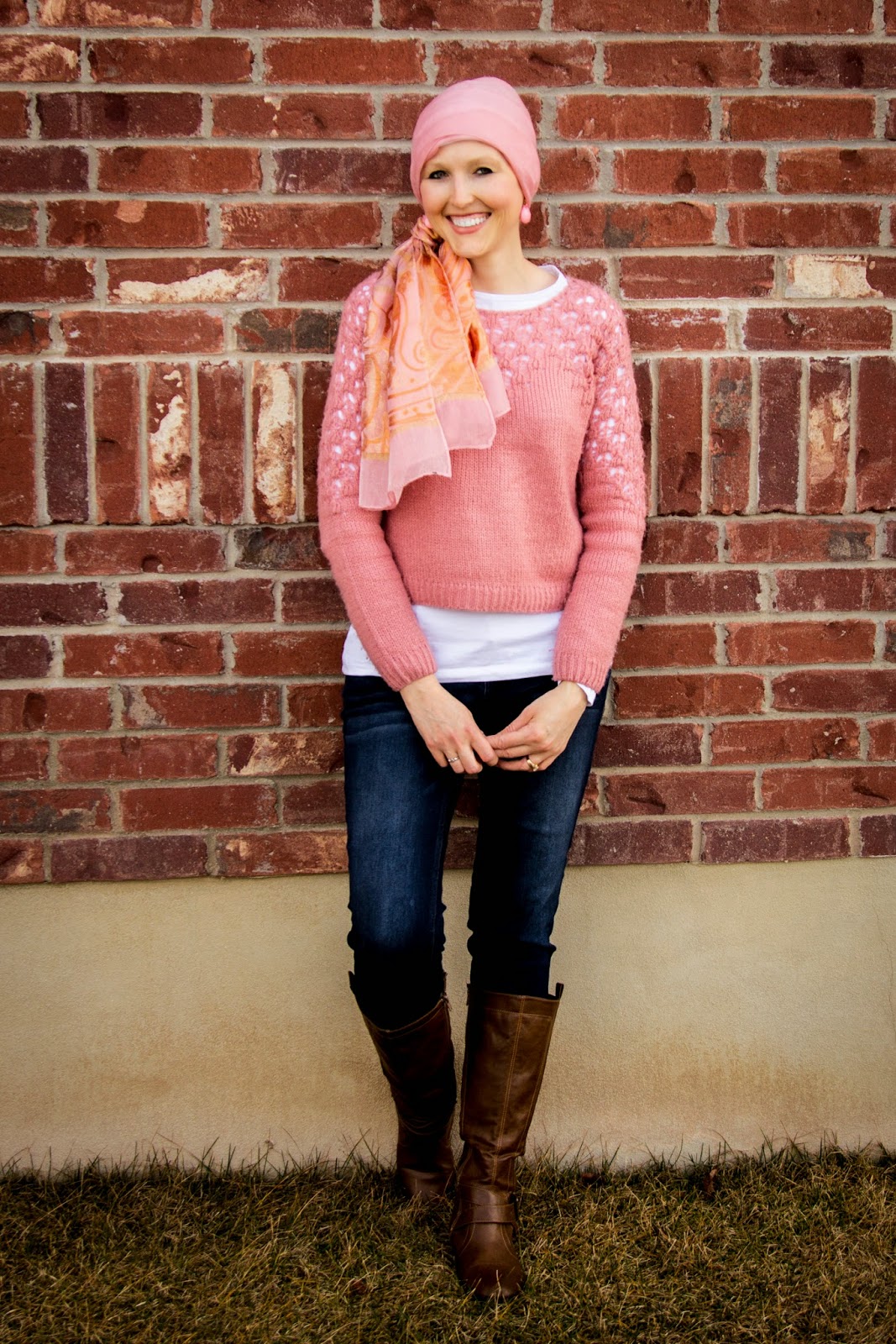 You might notice in that first picture that she's wearing a headscarf. That's because she has an aggressive, fast-growing soft tissue cancer, leiomyosarcoma. The chemo she's been doing for the past few years makes her hair fall out. {I told you she was brave, right?}