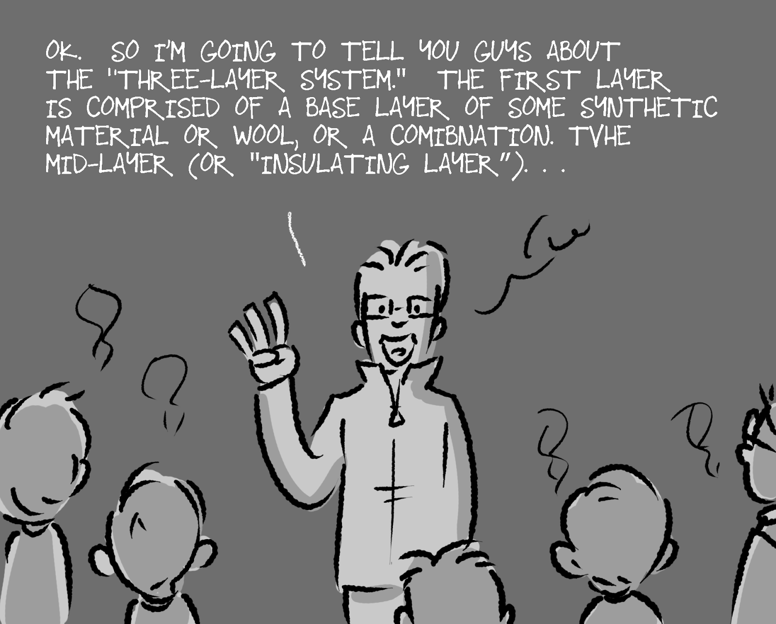 Out in the freezing cold of the parking lot, Joe launched into a giant lecture on how to dress warm...