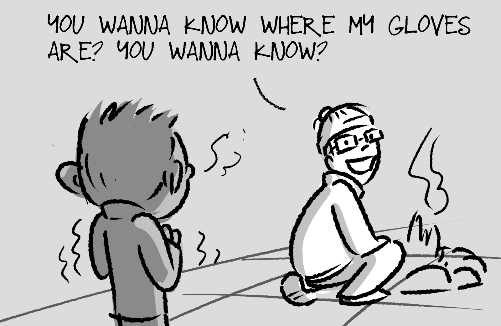He got pretty good and sweaty digging the cave, so when he went to bed that night, he laid his pants out to dry.