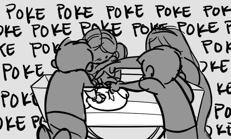 Both of these characters are on equal standing--heart and head. Both of them are in concave, less willful gestures. Charlie has one hand in head, one hand in heart. The girl's cupped hand = less force, hand in heart zone, a concave gesture of kneeling (a 90 degree heart gesture, leaning towards head). Her left hand is in the body zone, but with the back out. So the picture has a very romantically sweet feel to it.Next time: Colors and applications!