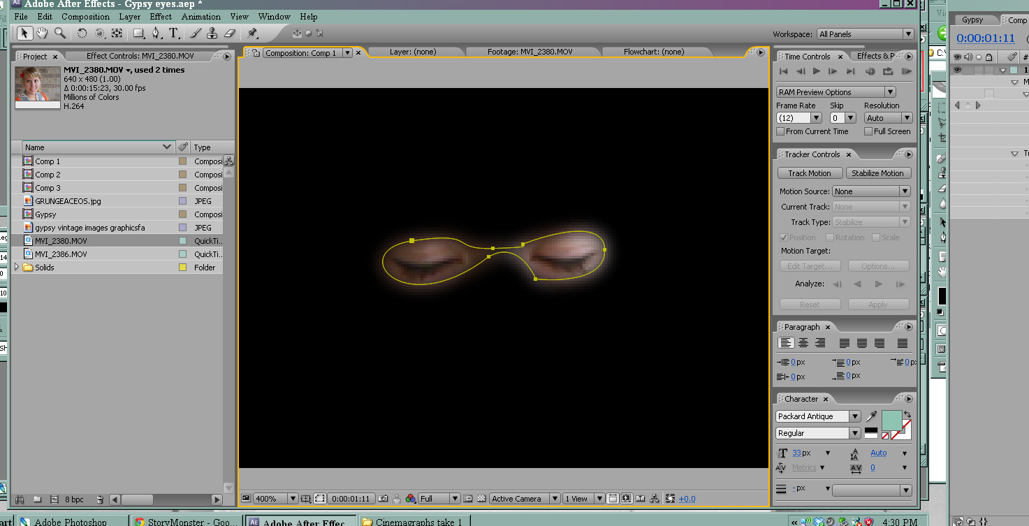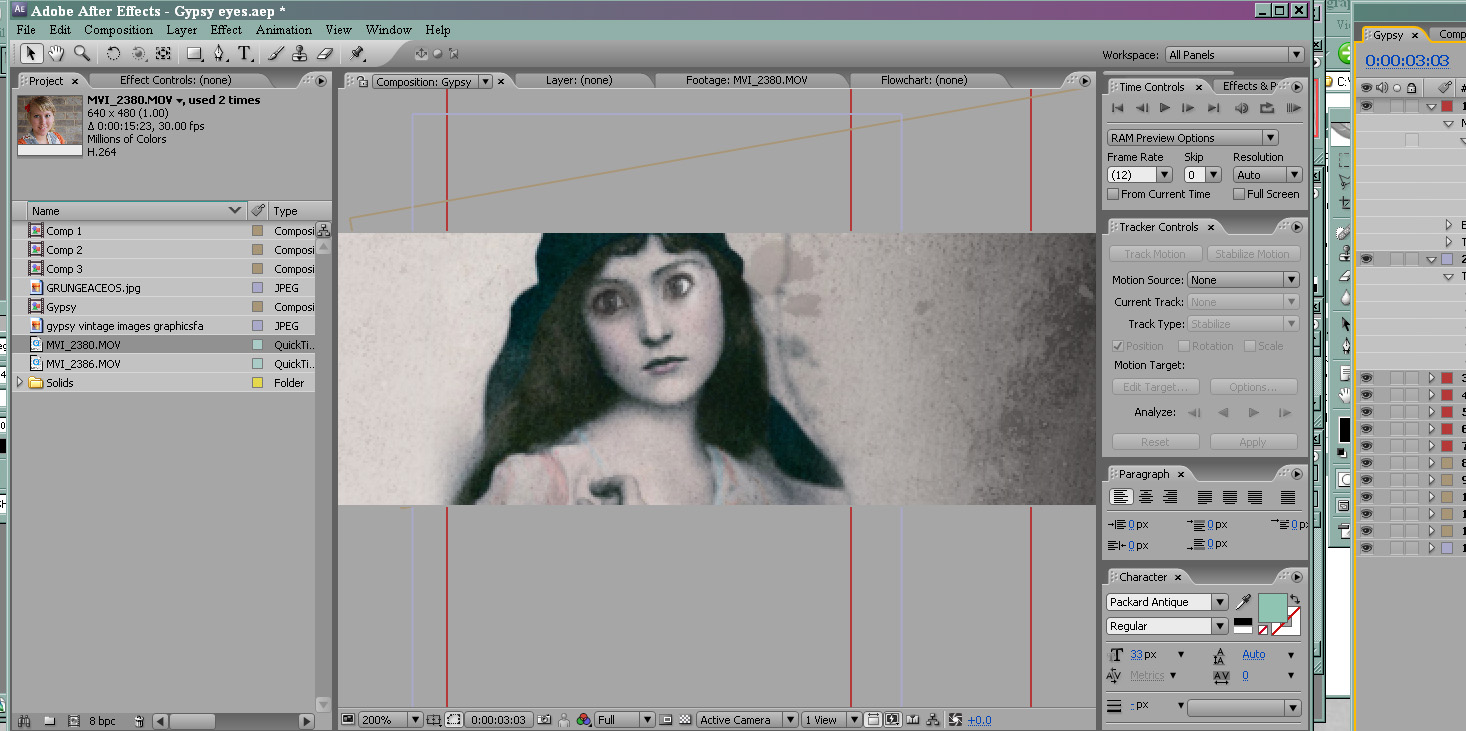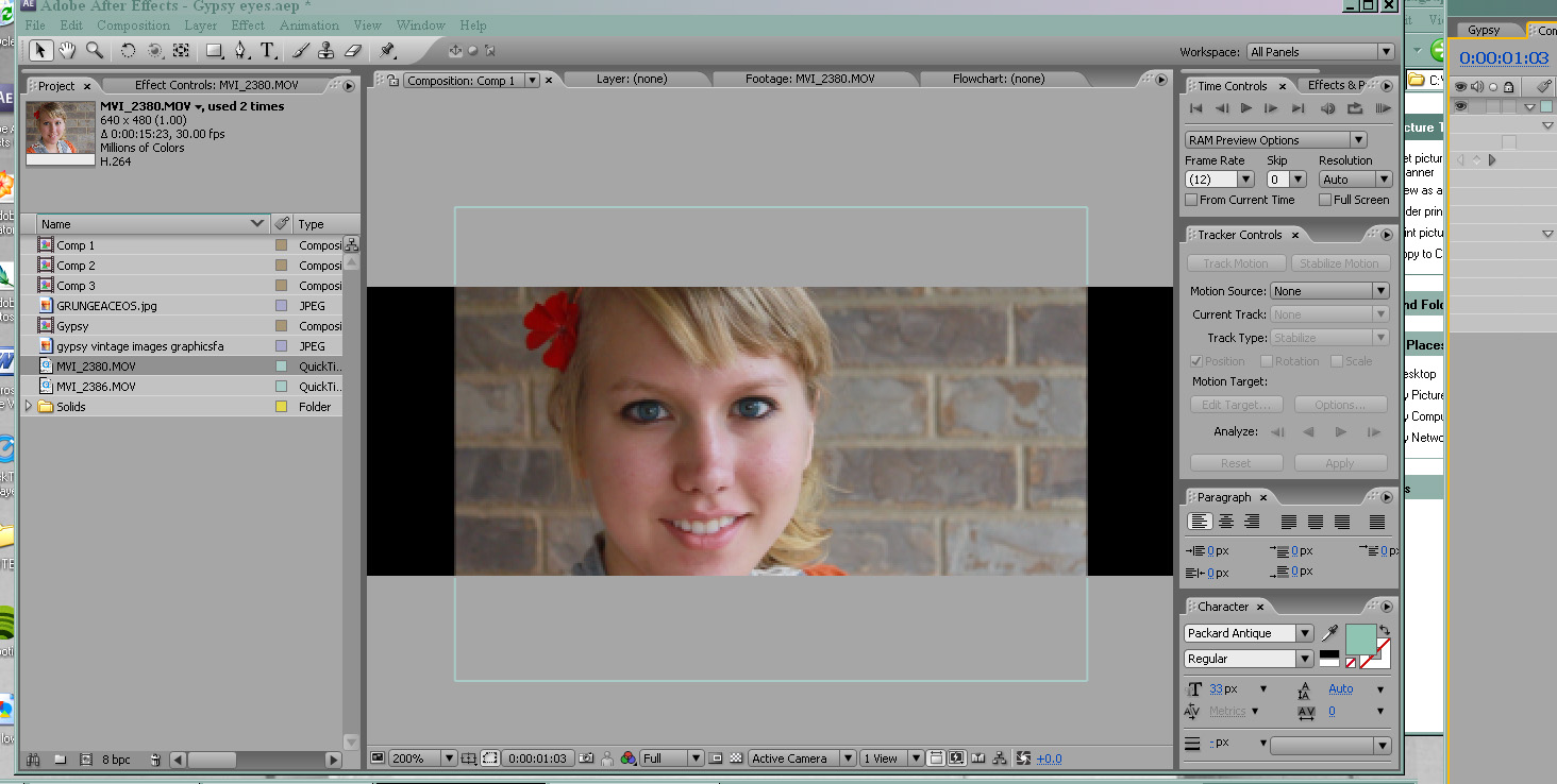 I filmed my 17-yr old sister sitting very still & doing Creepy Eyes. Import .mov into after effects.