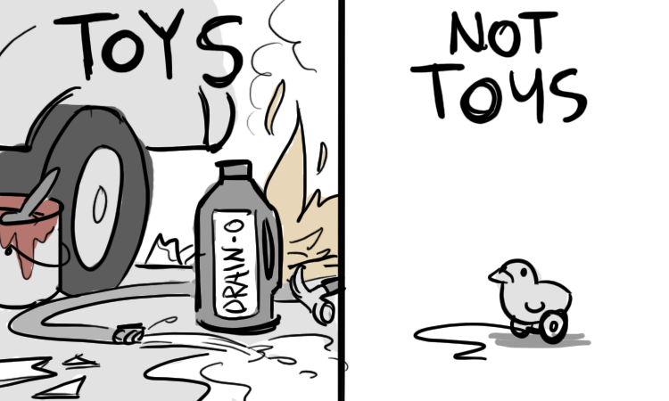 Toys and Not Toys.And babies make the BEST toys! They make noises and move and stuff. They're better than matches!