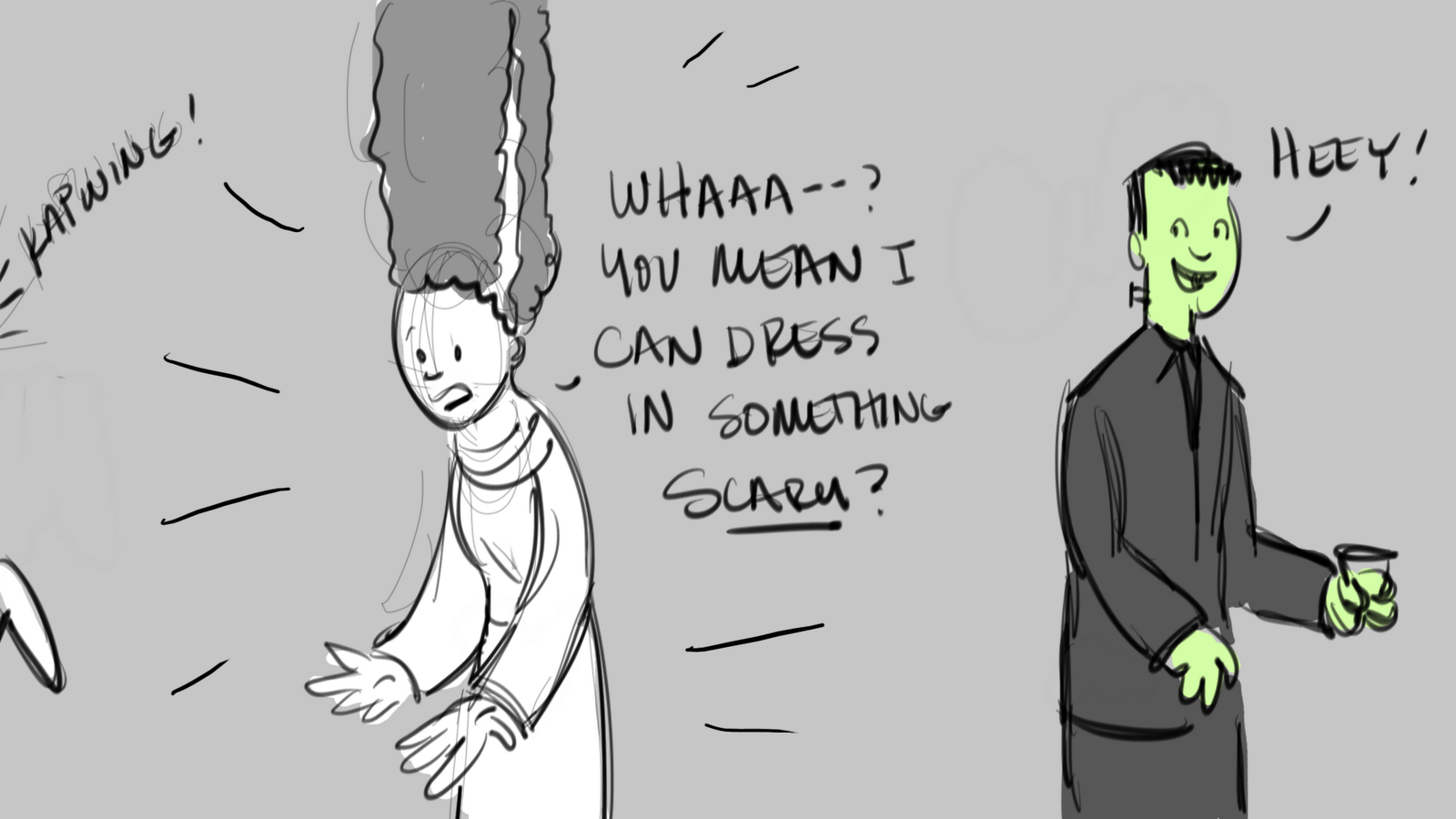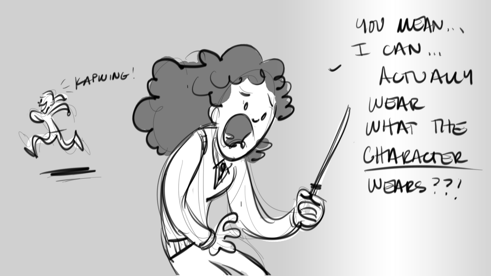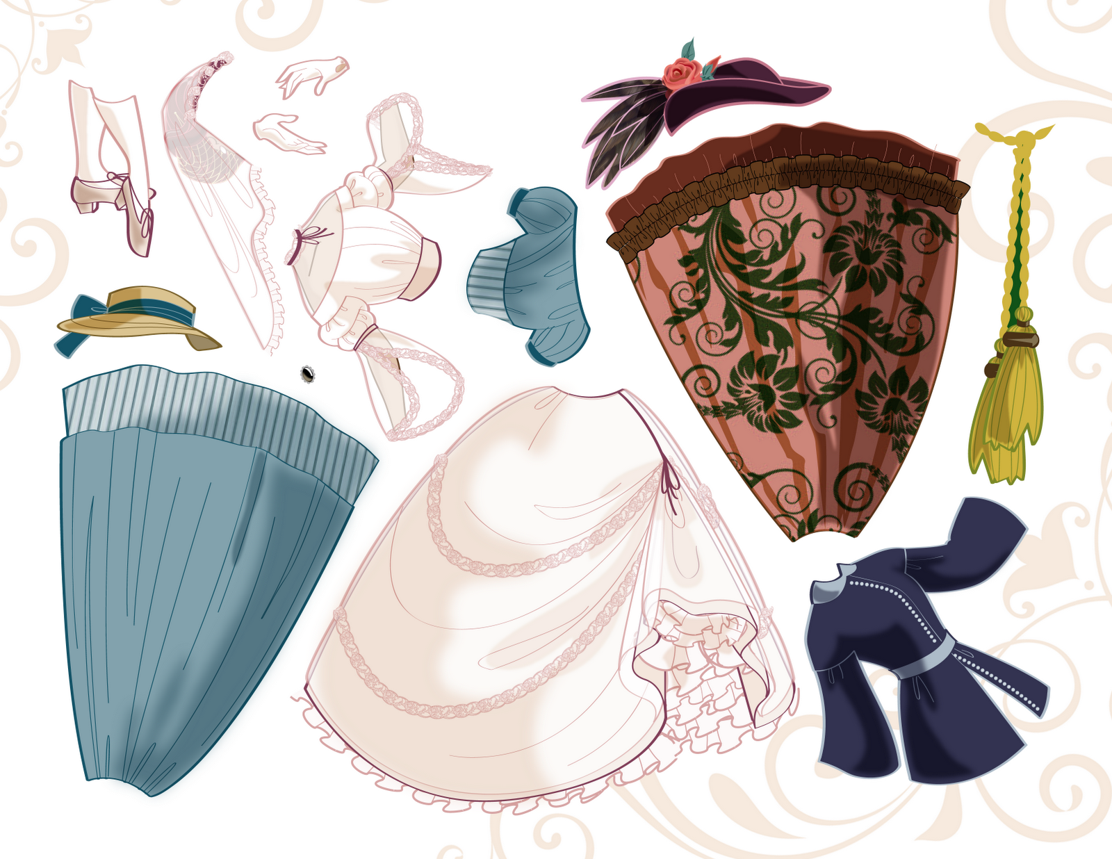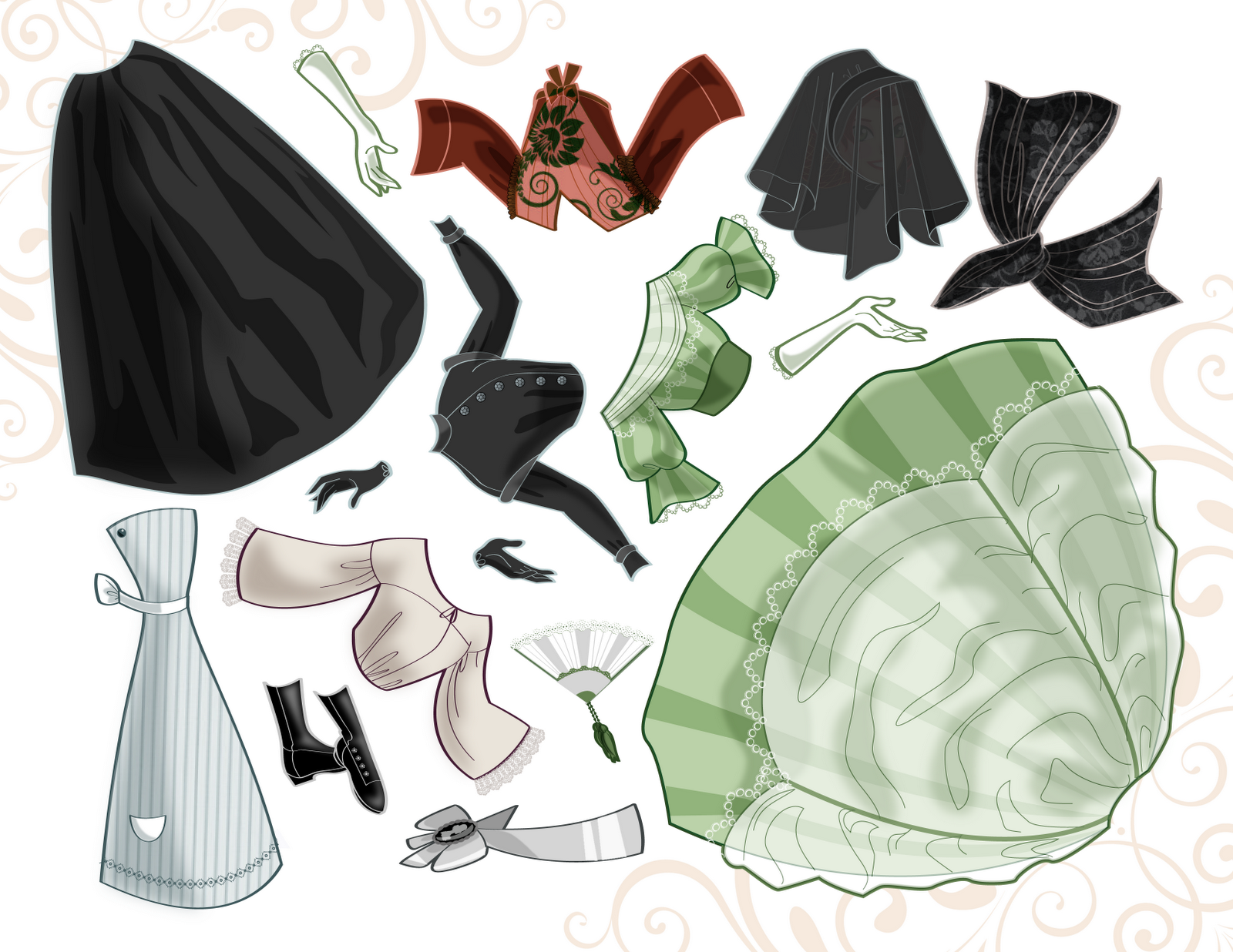 Originally ALL the outfits were going to be black, as per the Entwined story, but that was a whooooole lot of work for just a one-note joke, and I am nothing if not a lazy bum. They're historically accurate though*, so now you can impress your friends with your knowledge of garibaldi blouses. You're welcome.