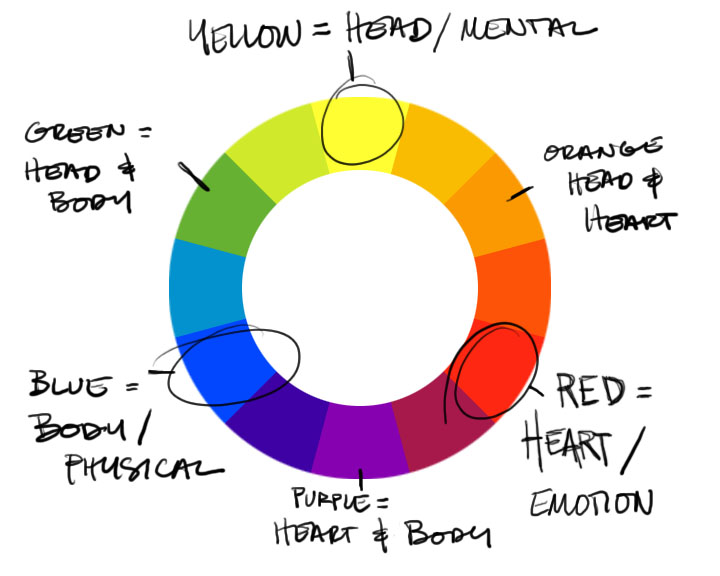 Heart is a cinch. Red. I never would have considered blue powerful or yellow enlightening, but it is surprising to see how it all fits. Some iconic pics: