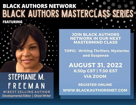 http://www.blackauthorsnet.comINTRODUCING Master Classes featuring USA TODAY and National Bestselling Authors Sponsored by Black Authors Network! Wednesdays, 6:30 pm CST / 7:30 EST Via zoom.