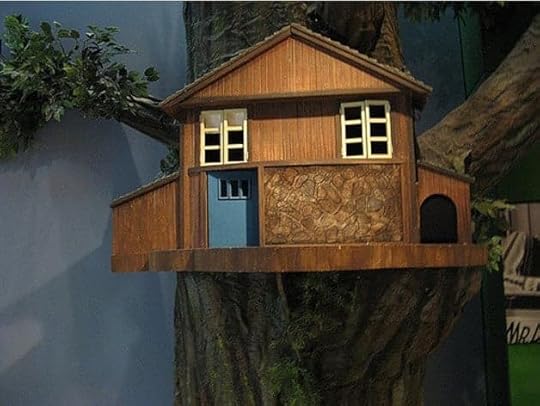 For any of the Canadian readers out there (like you, Wendy! :) ), you might have grown up with "Mr. Dressup," a Canadian children's television series that originally ran on CBC from 1967 to 1996. As Mr. Dressup, actor Ernie Coombs would lead children through a series of songs, stories, arts, crafts and imagination games, with the help of his puppet friends Casey and Finnegan, Wikipedia says. This author's good friend Jim Wilson of Canada, whose fine art you've seen on this blog before -- art of "The Dukes of Hazzard," "Green Hornet" and more -- has now turned his creative eye to the beloved TV icon of his youth. He has crafted a replica of the treehouse featured on "Mr. Dressup" for his friend, Rob.