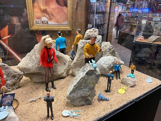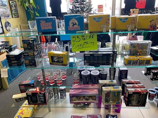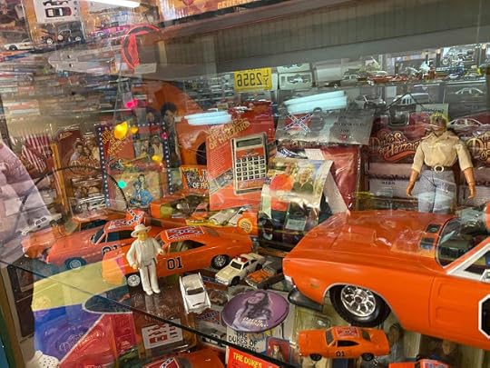 There are a few items shown above that you have seen on the Terrific TV Toys series, and there's one particular item (a set, if that's a clue) that you will see on an upcoming episode! On New Year's Day, Patrick was at Cooter's Garage in Nashville, and he snapped this photo for us while he was standing at the register. Thanks so much, Patrick, and thanks, Cooter's, for continuing to carry "Them Dukes! Them Dukes!" along with these other great "Dukes" books. This author really appreciates it.
