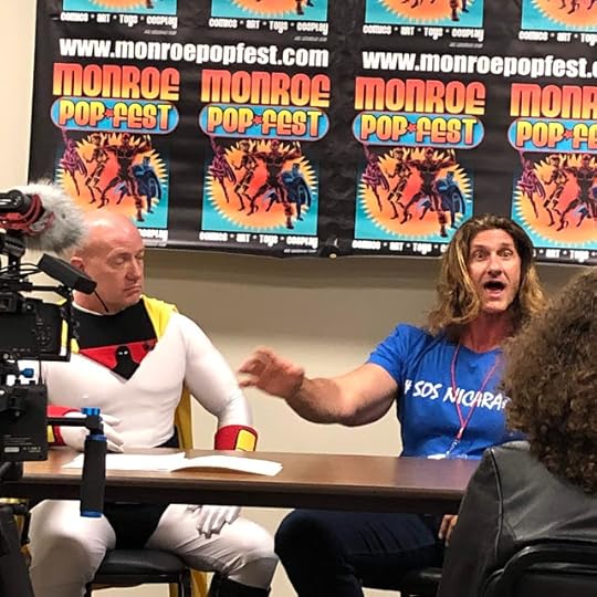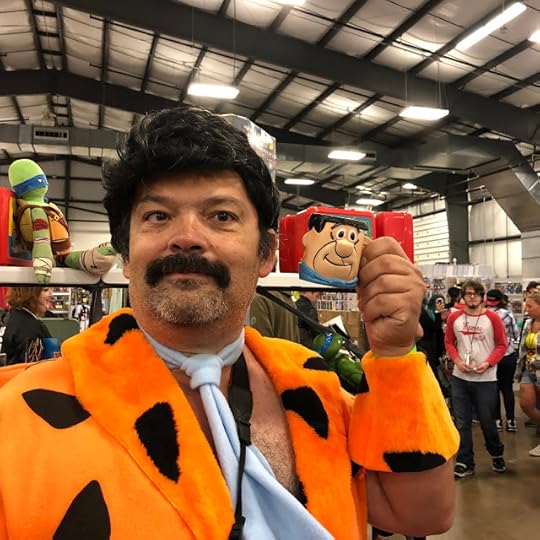It was so much fun cosplaying the Flintstones at the Monroe Pop Fest a couple weeks back for Andrea, Don, and this author! And many thanks to Crazy Mark of Crazy Mark TV, who did an interview with us at the scene, following the costume contest. You can see this video now posted on Crazy Mark's Facebook page. Bummer that we can't embed it here! But go check it out and hear all about how we put this animated trio together!