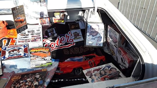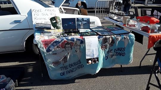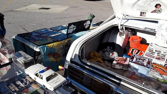 Special thanks to T.J., owner of the Hazzard County Sheriff's car above, for snapping this one! T.J. had a great display of "Dukes of Hazzard" collectibles at the event; see the photos further below ...