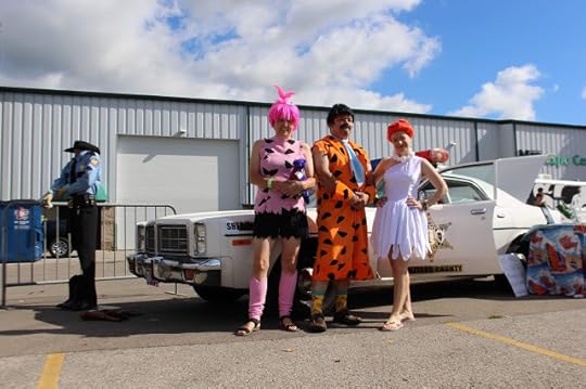 Got the chance yesterday to take in another show that's been going on for a few years that I had not been able to make it to in the past, the Monroe Pop Fest south of Detroit in Michigan. This was a great comic con with special celebrity guests from the screen and the comic book page, and lots of great vendors (shopping ... we love the shopping ... yummy ....). Pals Andrea and Don were there, and we cosplayed the Flintstones for the first time, and we actually got third place in the costume contest! Yay! (And yes, there were other entries -- probably 30 or so!) It was a fun day.