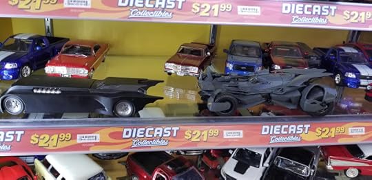 Jason was in Indianola, Mississippi, at a Love's truck stop. "Almost every GOOD Batmobile was there," Jason writes. "Not the Val Kilmer or George Clooney crappy ones, or the Michael Keaton, which is my most favorite, were missing. But still an impressive display of cool Batman stuff for $21.99 a piece."