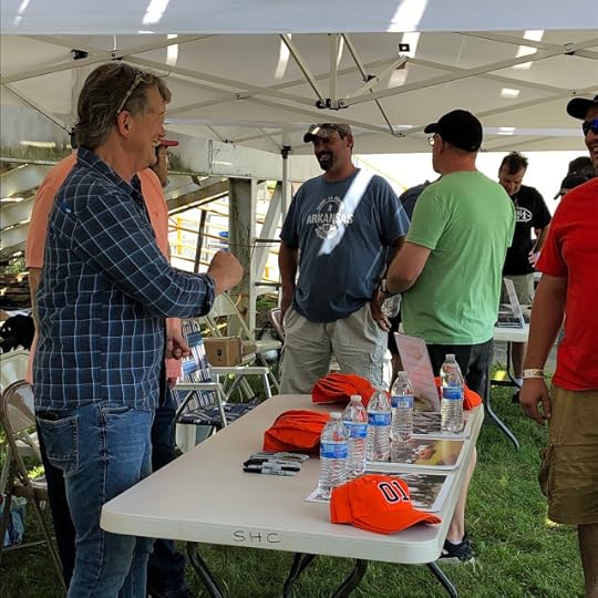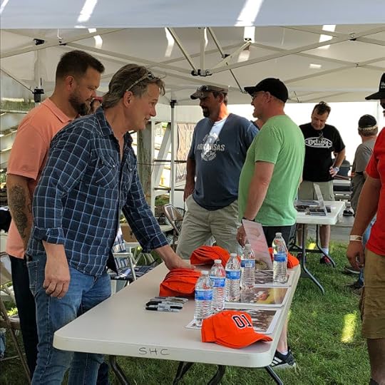 Did you know Byron ("Coy Duke") Cherry of "The Dukes of Hazzard" has a new movie role coming up? It has a couple very special "Dukes" connections -- namely the director! Byron tells us all about it in the first of three parts of our special video coverage of the Hazzard County Cars and Stars Concert at Owosso Speedway in Michigan this past weekend. This author was there with buds Andrea and Don, and even my fellow vlogger Derek (ChunkeyMonkey40) in a vlogception! It was a blast to see Byron again, as he's always the life of the party. Here, he signs photos for fans and even FaceTimes with the mom of one attendee.