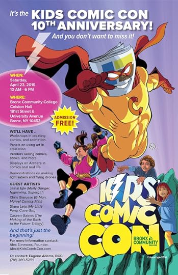The 2016 KIDS COMIC CON is set for April 23 at Bronx Community College, 181st Street and University Avenue, Bronx, NY from 10 a.m. to 6 p.m. For additional information and up-to-the-minute programming updates, please visit www.facebook.com/KidsComiCon .