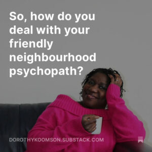The post So, how do you deal with your friendly neighbourhood psychopath? appeared first on Dorothy Koomson.