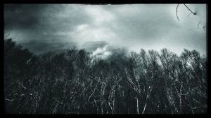 The wind hissed through through the high boughs. Fog swirled up and dissipated at the edge of his tiny yard, like a fleeting ghost.