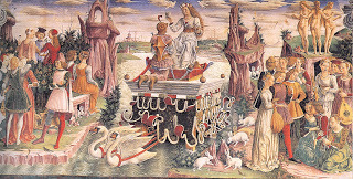 It's also fun to see paintings where fifteen-century teenagers are behaving like, well, teenagers. See the cluster of frisky young adults in the bottom right corner of this painting, The Allegory of April, by Francesco del Cossa in the Palazzo Schifanoia: