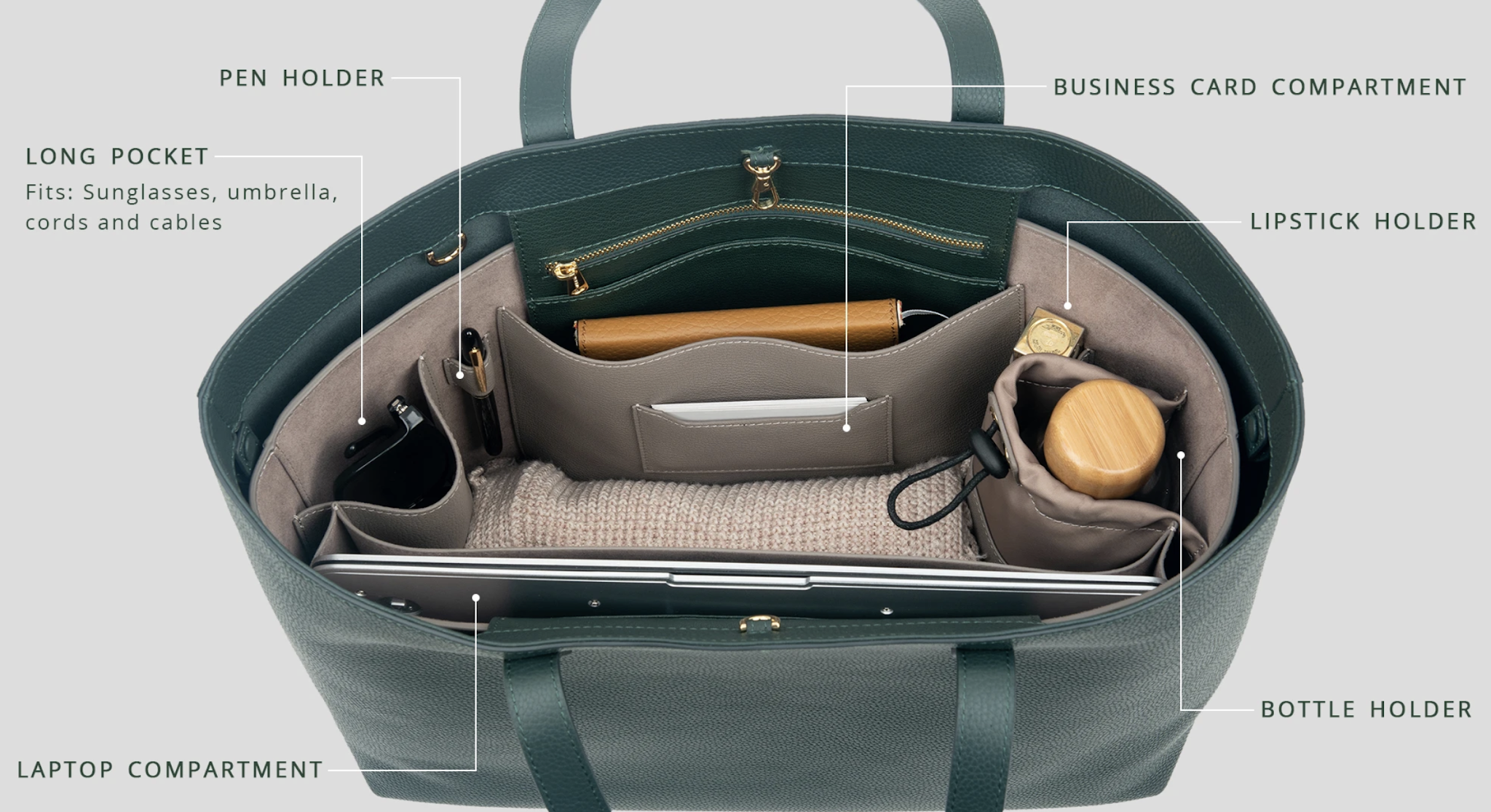 Tocco Toscano means "Touch of Tuscany". This is their work BIB (bag in a bag) made of vegan leather. The feel of this bag is just like genuine leather and has a slight pebbled feel to it. My favorite part of this bag is the organizational compartments in the interior. everything is thought out from water bottle storage to lipstick storage! The work BiB can fit into their tote bags to keep you organized. Or, you can use this as a standalone bag. It comes with removable straps. TDCXTOS for 15% off (valid until March 31, 2021).