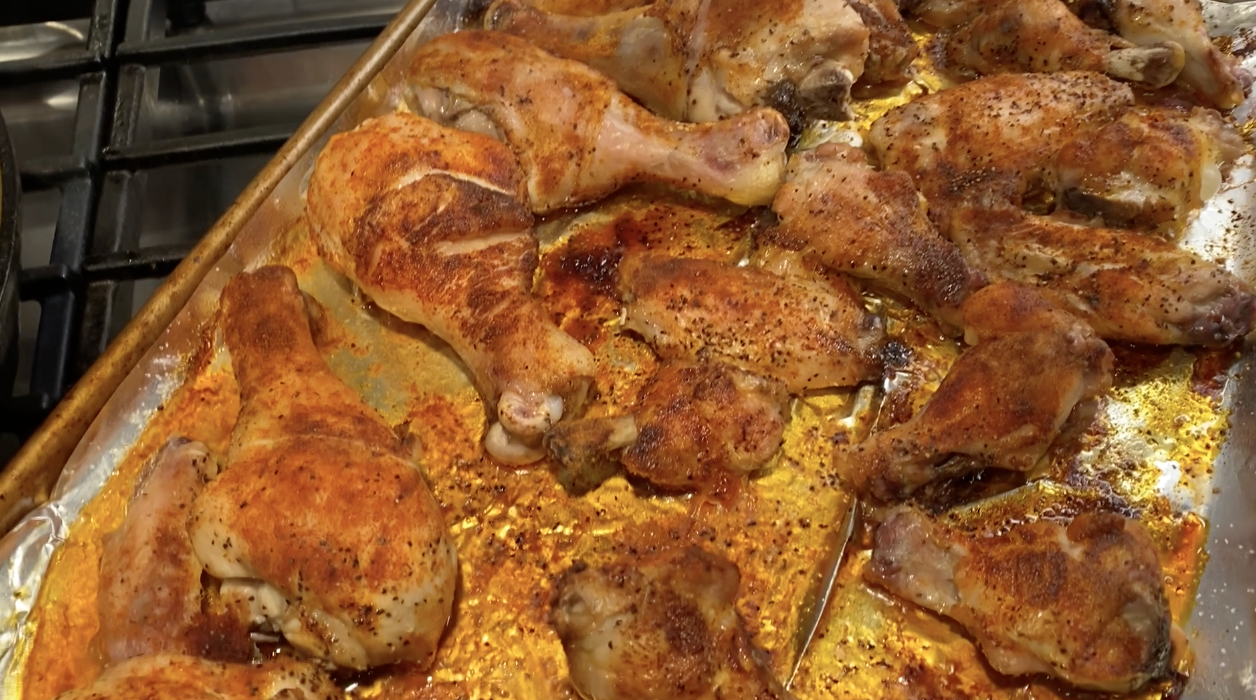 This is one of my children's favorite recipes. They love chicken drumsticks! I drizzle the drumsticks with olive oil, and sprinkle on paprika, garlic powder, onion powder, salt and pepper. I don't usually measure the seasonings, but you could do 1 Tbs paprika and 1 teaspoon each of garlic and onion powder to be conservative. (Although I probably put about a tablespoon of each. ha!) As for salt, just use a dusting. I bake the drumsticks at 400 degrees for about 20 minutes or until the chicken is fully cooked through.