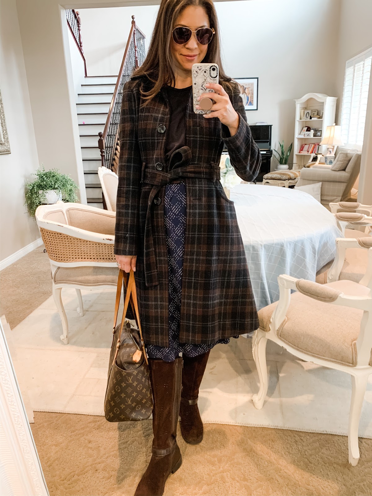 Adding my favorite plaid coat brings a new pattern and texture dynamic to the outfit beautifully.