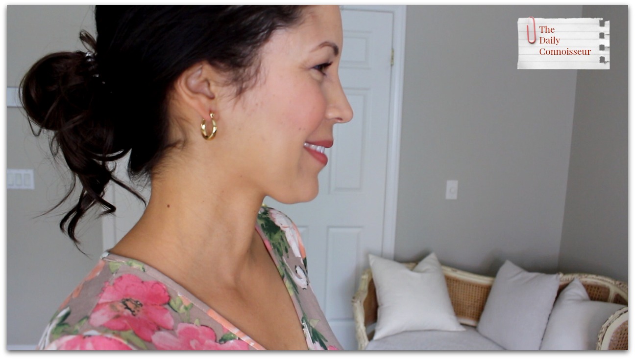 The pearl earrings, hoop earrings, and gold bracelet featured are from Ana Luisa Jewelry NY