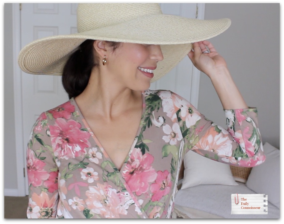 If it's sunny outside, I like to wear a large sunhat (linking similar).