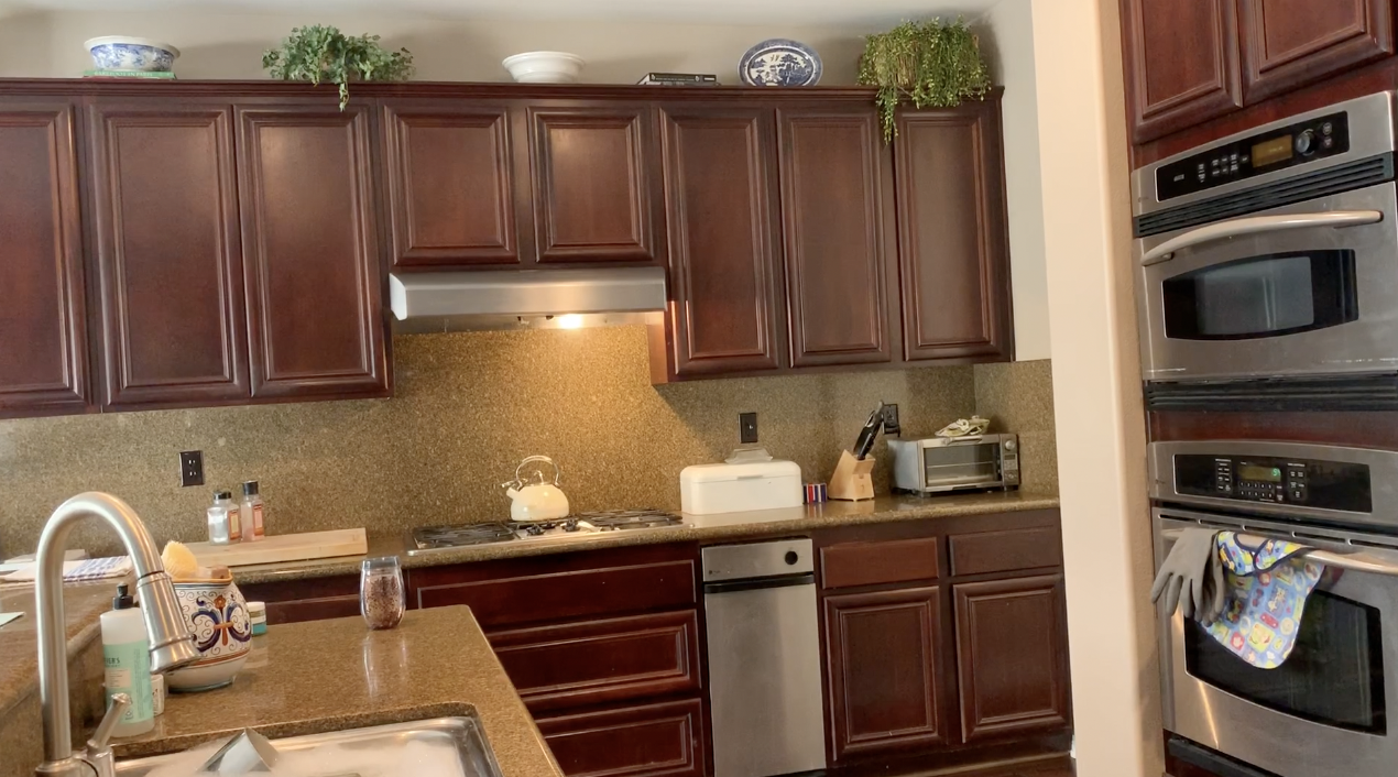 We are very grateful to have such a large kitchen. We did not like the darkness of the granite and the darker cabinets, however. We also had another conundrum... the seating in the kitchen was a major problem for us.