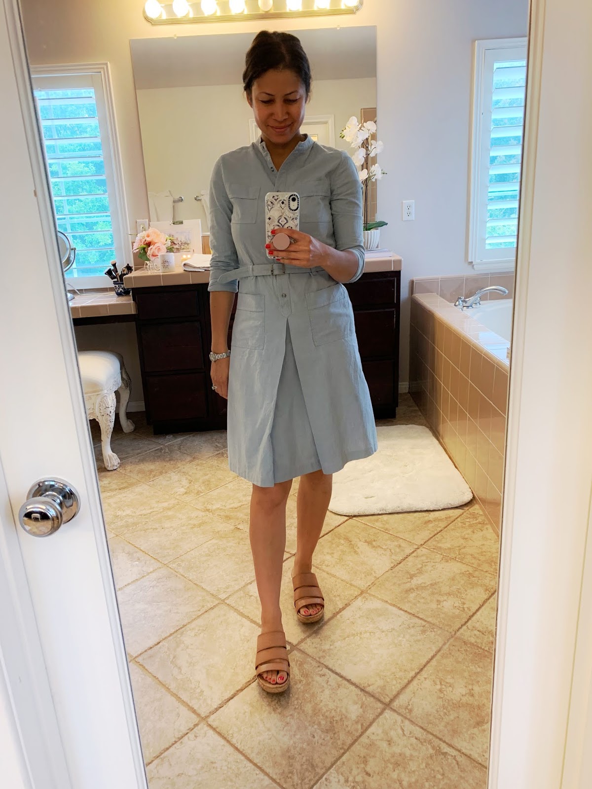 Welcome to another week of outfits for ten-item wardrobe inspiration. This week we are attending a Memorial Day BBQ and even a wedding. This was a fun week and I have some new items to share with you, including new jeans (Yay! Plus, I got a discount code for you. See below) and a wonderful versatile new shirt.
