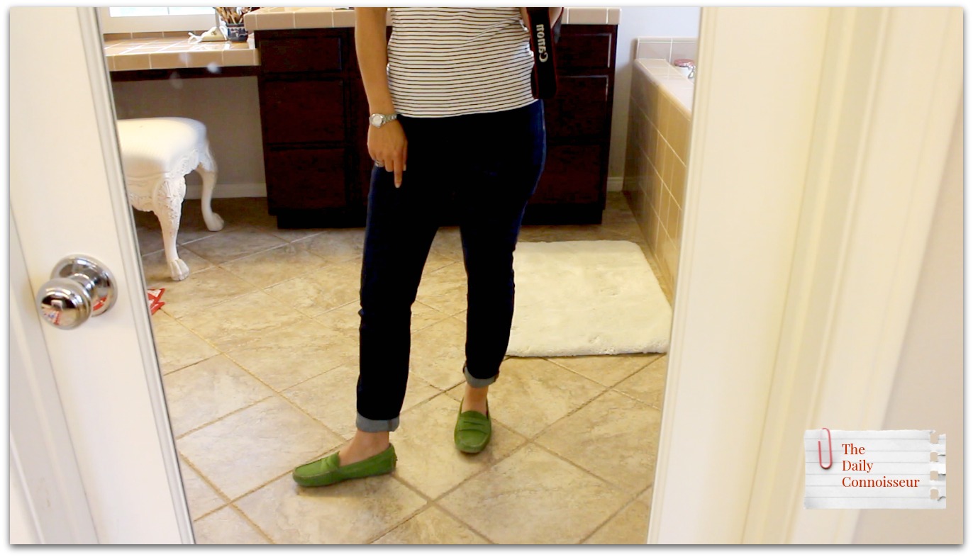 My green driving loafers are no longer available. I'm linking similar ones here: a high-end option with Tod's and a budget option from Amazon (please note, I cannot comment on the quality of the budget option. I am linking here in case anyone wants a similar look but I have not tried these personally).