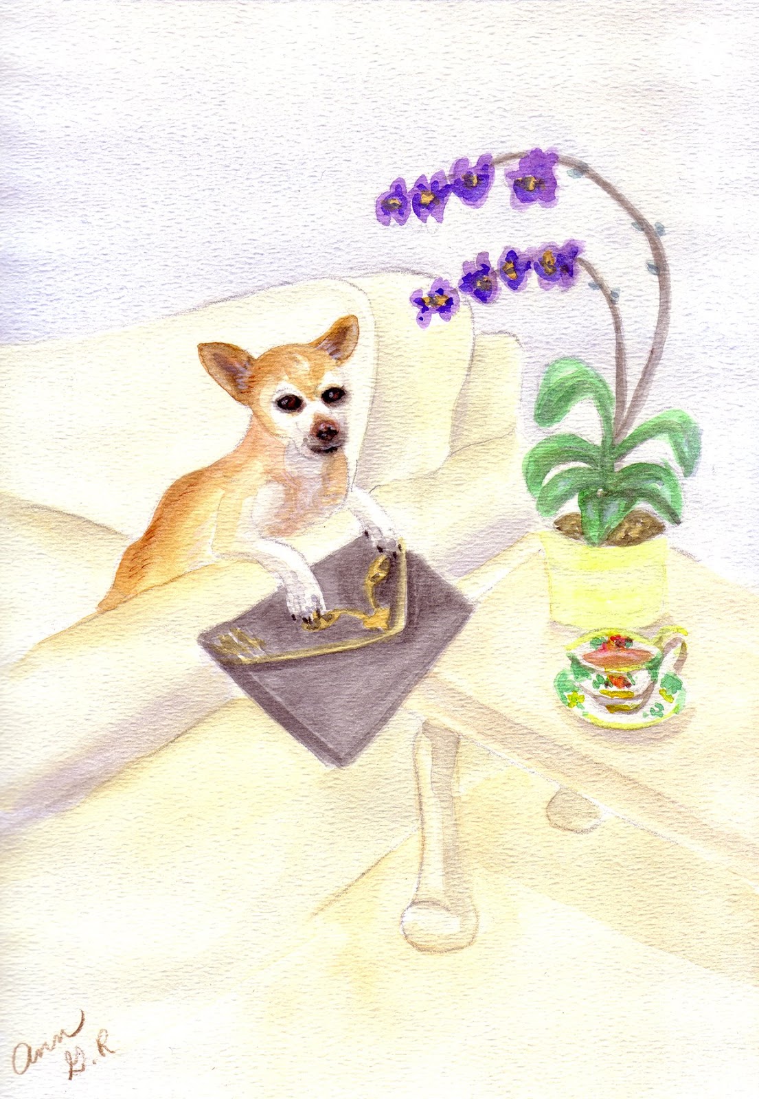 Thank you to Daily Connoisseur reader, Ann G. Rusky, who painted this picture of Gatsby for me. I love it Ann. You are so talented and you captured him well.