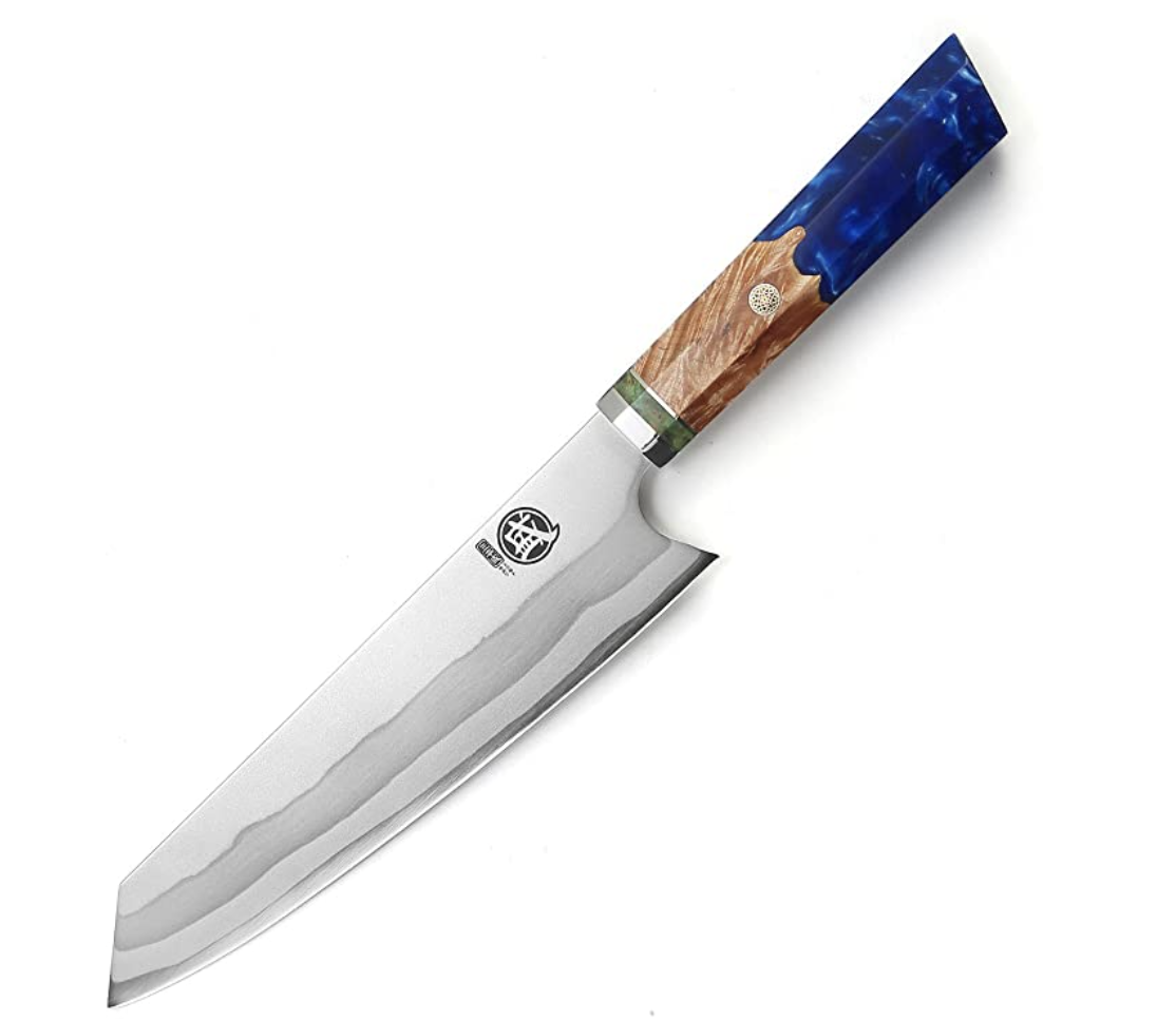 Sakari Japanese knife This 8 inch, Japanese chef's knife comes in a beautiful wooden and red velvet box, has an exquisite handle, is of the utmost quality and is highly giftable.