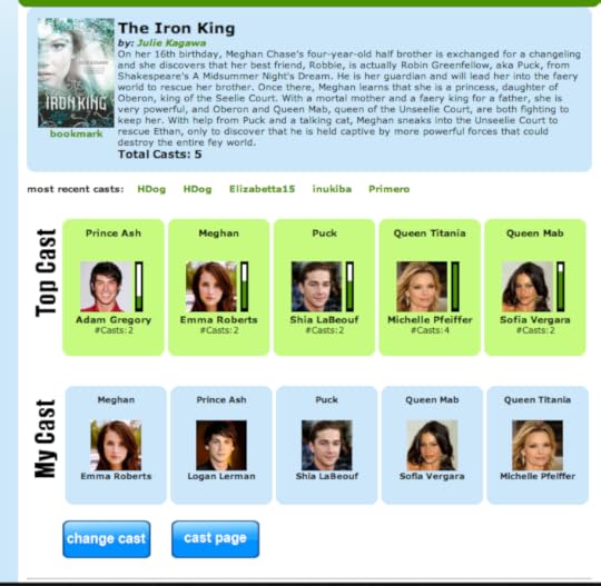 So, surf on over to StoryCasting.com, open an account (it’s quick and simple) and start playing God with your favorite characters. Below is my cast for one of my recent reads.