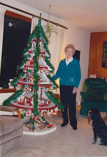 Grandma Anderson beside her Swedish Christmas Tree made by her Swedish Husband