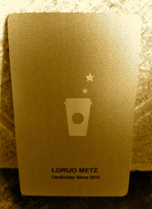 To make this already long post short, I was thoroughly disappointed when I used my gold Starbucks card for the first time. There was no, Mrs. Metz! No, snap to attention. No…special anything. As the barista handed my card back, along with my Venti latte with an extra shot of caramel, I quietly inquired if they had given me the gold card discount on the extra flavor shot. Sure, came the reply, it automatically comes off when we run your card through.
