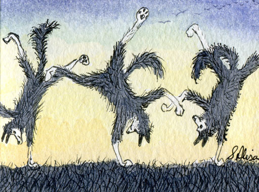 Thank you goes especially to Sri for her wonderful post about my artwork. We love that post! (And we're sending Sri lots of bones and gravy as a special thank you.)