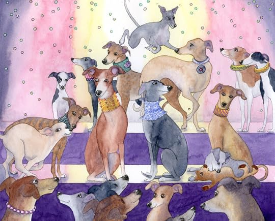 I'm quite fond of my whippet and greyhound painting of an egg and spoon race which has made a successful greeting card and print.